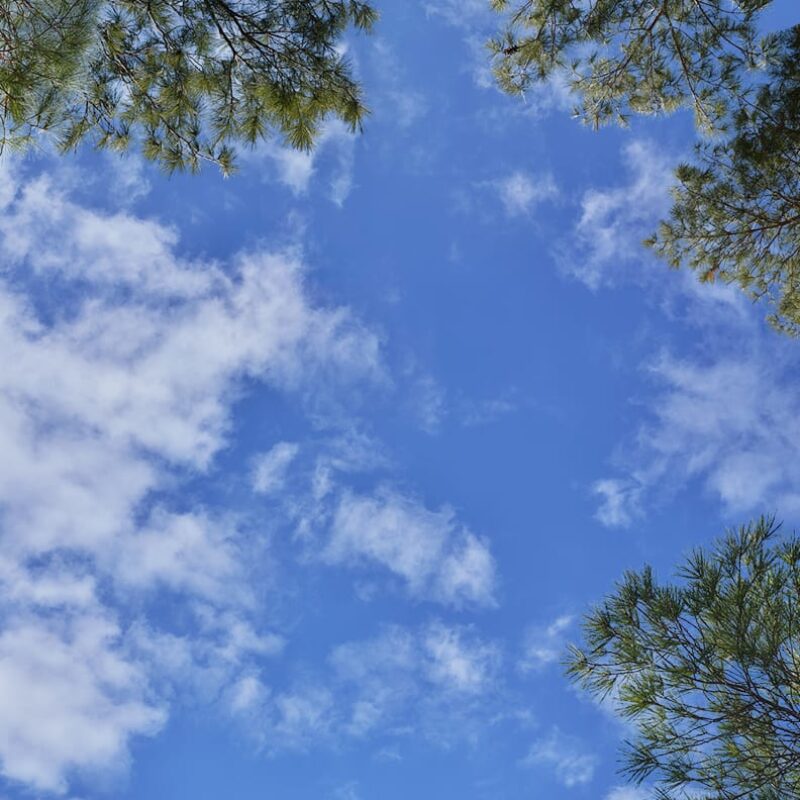 Sky Factory Virtual SkyCeiling Master Image 6am Featuring Layered Clouds and Spring Blossoms and Foliage.