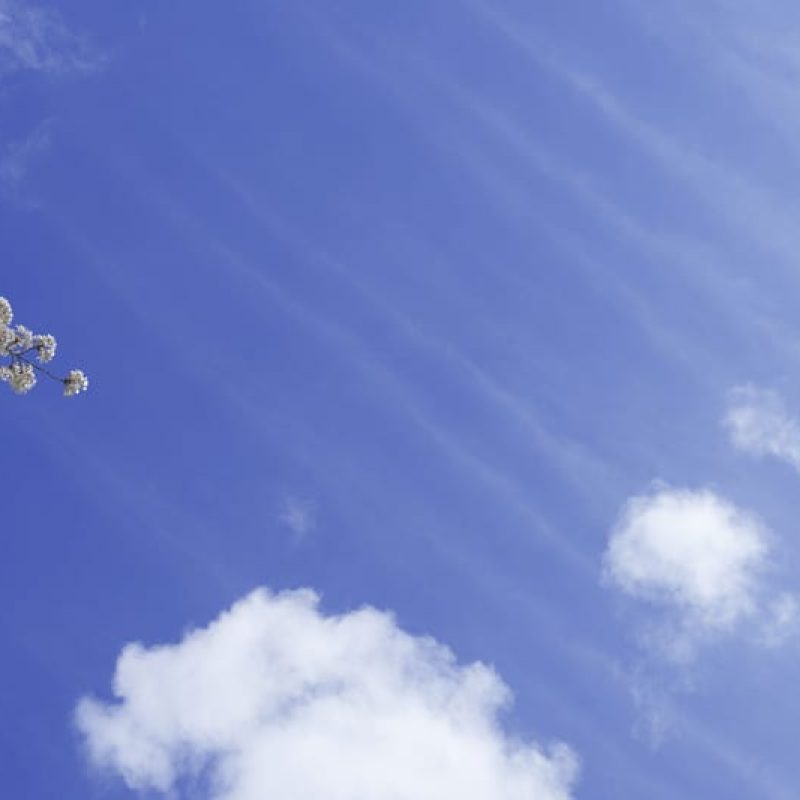 Layered Clouds, Blossoming Spring Trees