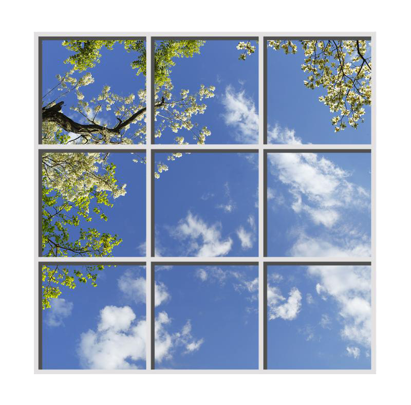 Sky Factory Square Classic Virtual SkyCeiling 6am01_6x6md_02 measuring 6x6 with 2x2 tiles featuring Puffy White - Cumulus Clouds and Spring Blossoms and Foliage