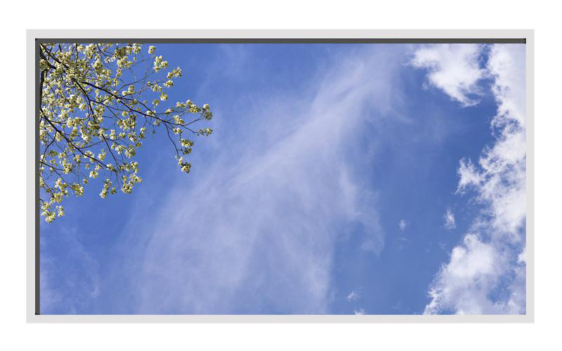 Sky Factory Virtual SkyCeiling Master Image 6cc Featuring Layered Clouds and Blossoming Spring Trees.