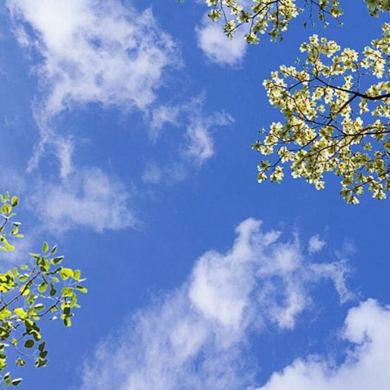 Sky Factory SkyCeiling Master Image 6er Featuring Layered Clouds and Blossoming Spring Trees.