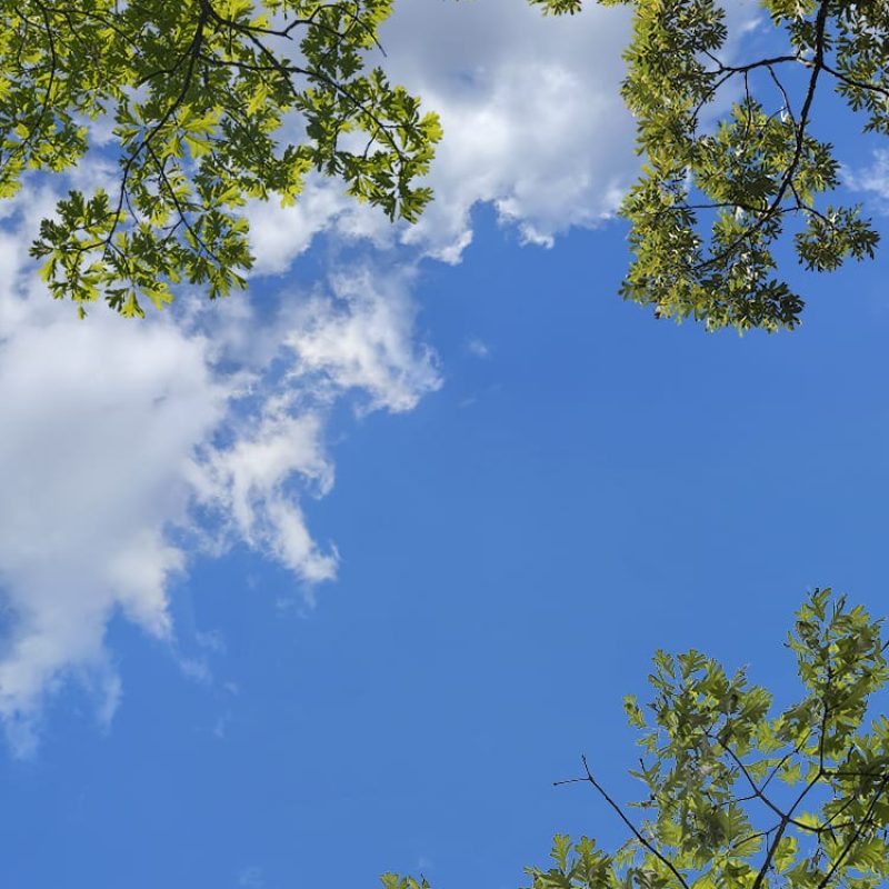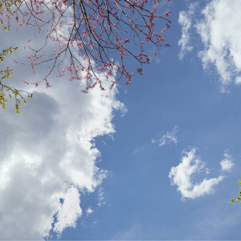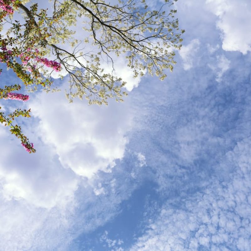 Sky Factory SkyCeiling Master Image 6er Featuring Layered Clouds and Blossoming Spring Trees.