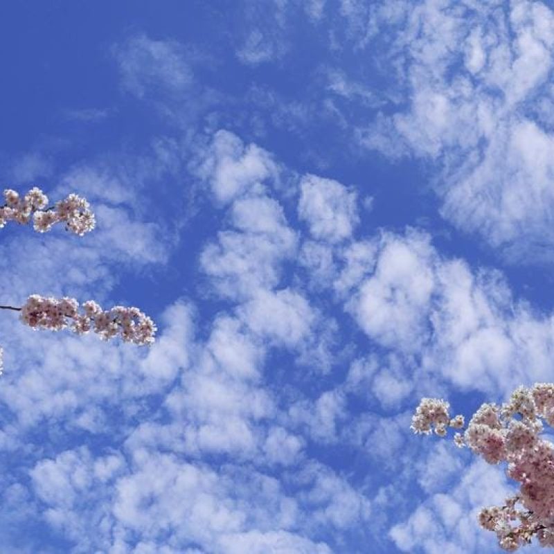 Sky Factory Master Image 8mcF featuring Layered Clouds and Spring Blossoms and Foliage.