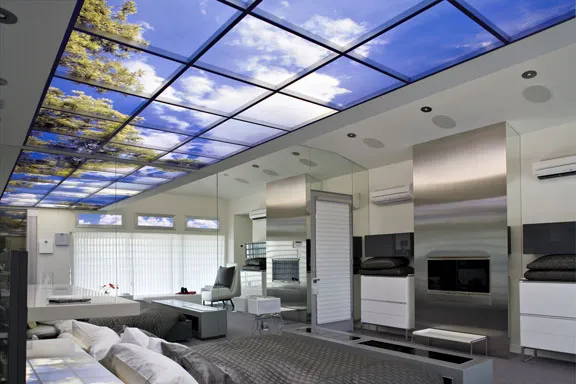 Rectilinear Luminous SkyCeilings and Clerestory Luminous Virtual Windows add nature to a modern home.