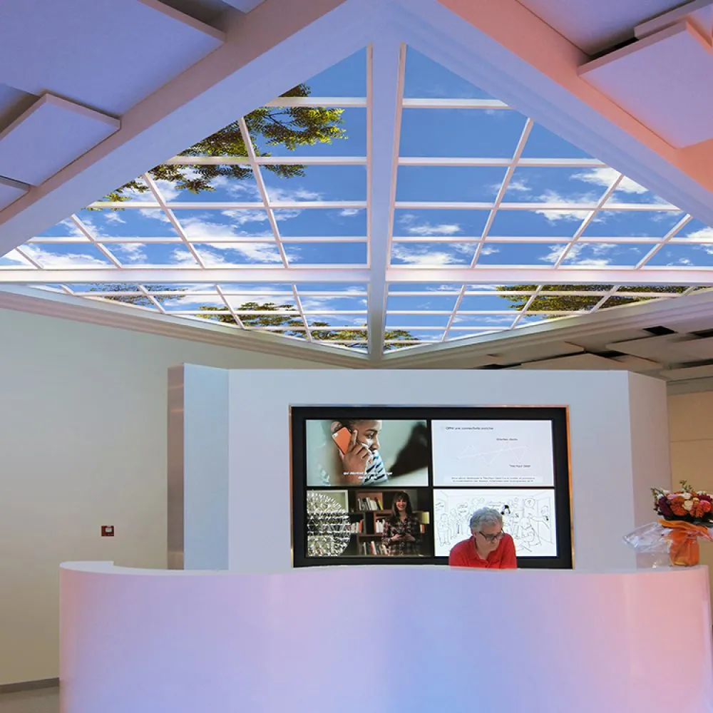 Elevate your building's entrance with Sky Factory SkyCeilings. Contact us today to create a captivating and welcoming environment in your lobby and enhance the overall atmosphere of your building.