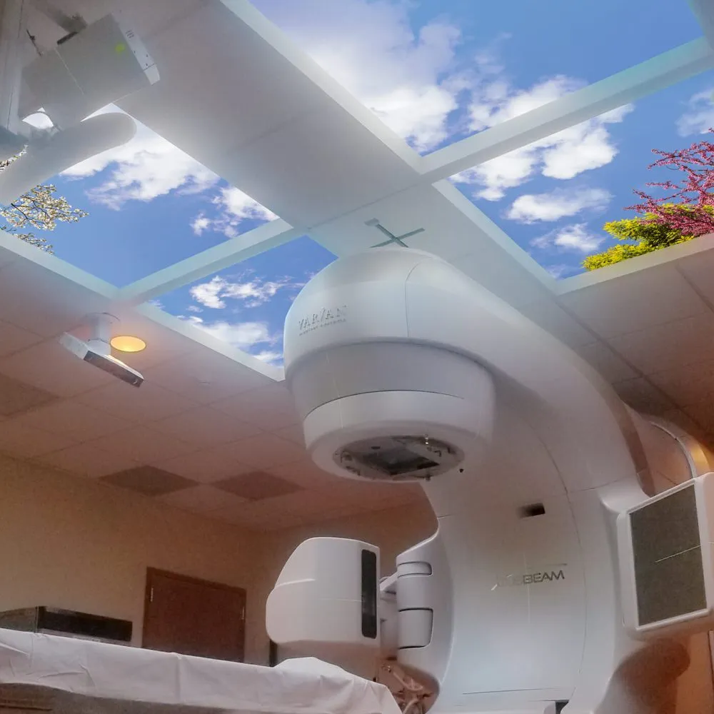The hospital added a third installation above a GE Lunar iDXA bone densitometry scanning bed. All three illusory skies add a credible perceived connection to open skies that enables patients to relax during the scanning procedures.